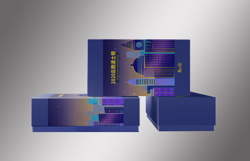 設(shè)計理念:本款包裝主要是推廣、宣傳一場“云跑”活動品牌,整個包裝盒以充滿希望的藍色為主打色,正面采用手繪波士頓建筑物圖案作為主圖,通過圖案可以展示出本次活動的主題,讓參與者看到本款包裝盒一目了然。